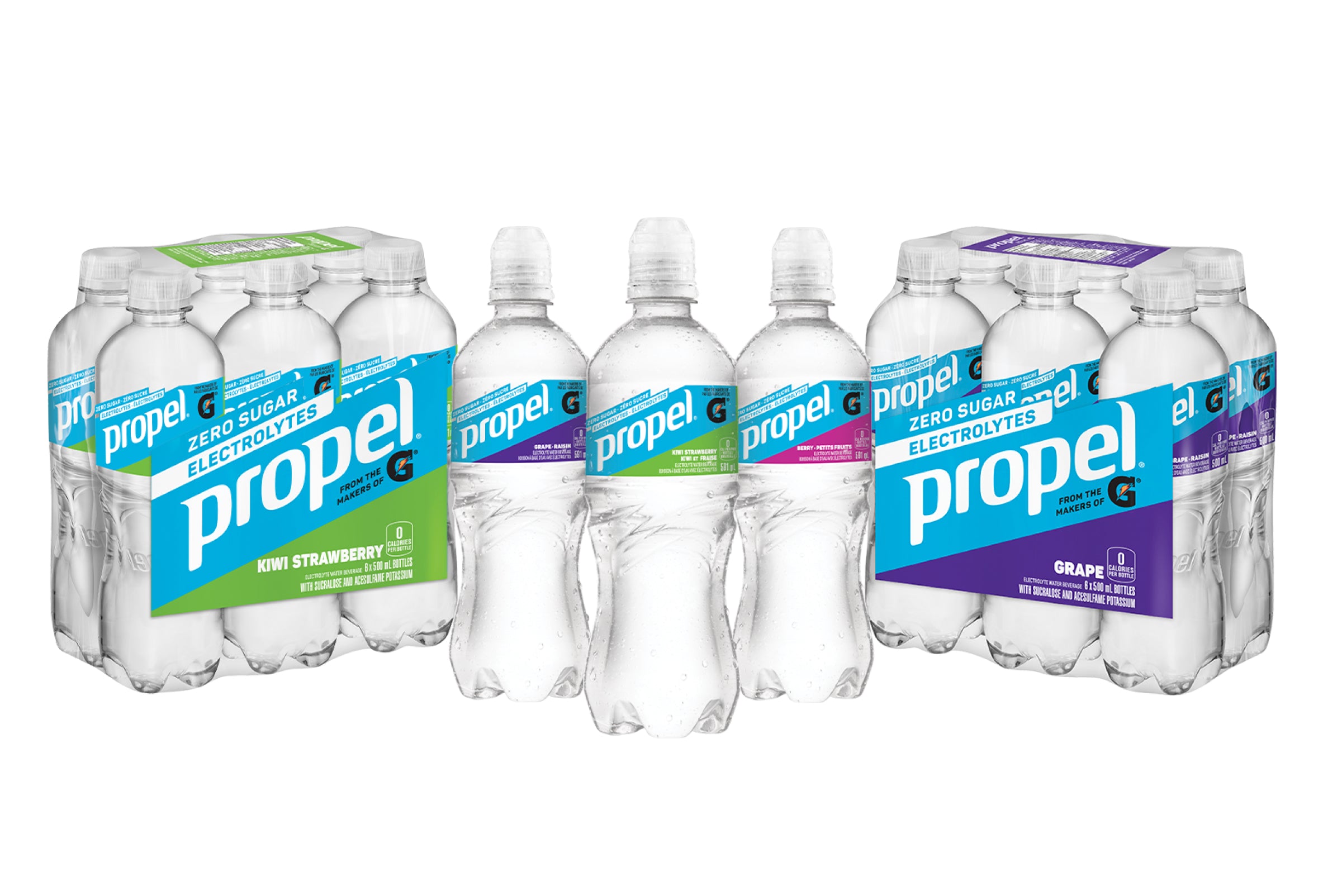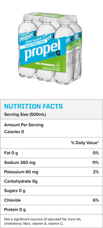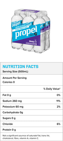 What if water were as active as you? Propel® Electrolyte Water Beverage is now available! With the same electrolytes as Gatorade® * and no sugar, Propel® is how Gatorade® does water. Propel® is enhanced with B vitamins, and antioxidant vitamins C & E, to help maintain good health for your active lifestyle. It comes in three refreshing flavours to choose from, Kiwi Strawberry, Berry, and Grape.